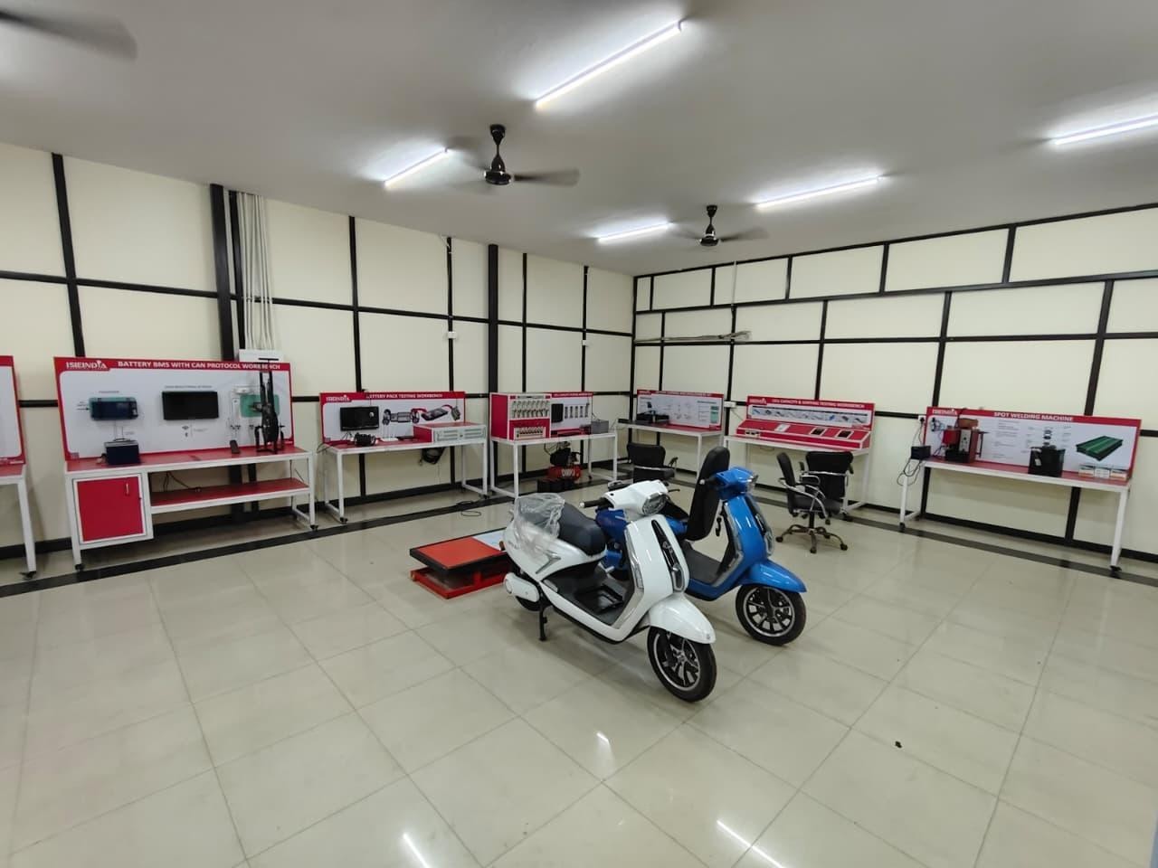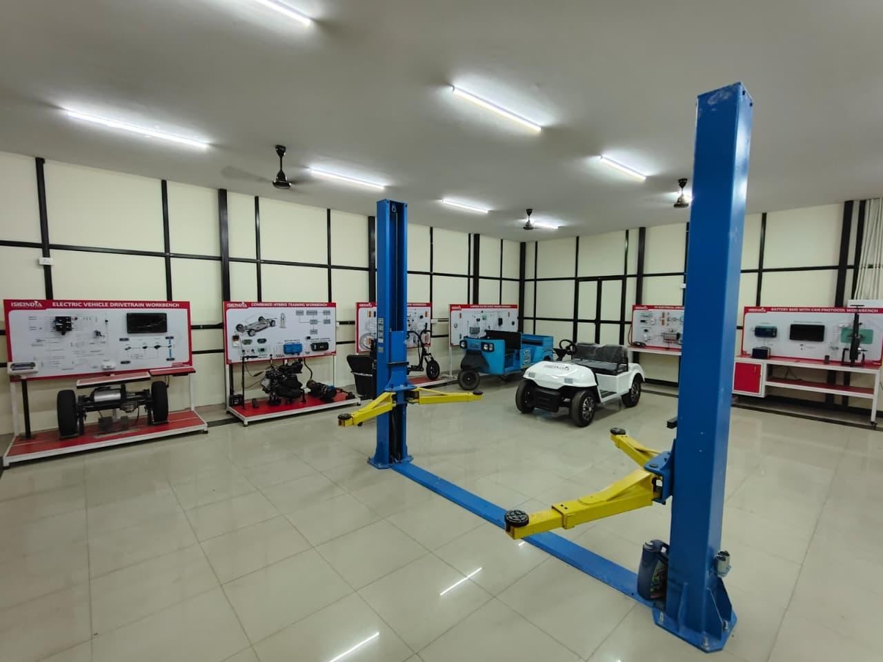 A state-of-the-art multidisciplinary facility for electric mobility, hybrid vehicles, and battery technologies. It features BMS workbenches with CAN communication, battery pack/cell testing and sorting systems, EV drivetrain/hybrid training platforms, electric two-/three-wheeler workbenches, EV electrical circuit trainers, hydraulic lifting, and spot welding machines. Ideal for hands-on learning, projects, and research in EV powertrains, energy storage, power electronics, motor control, and charging systems.