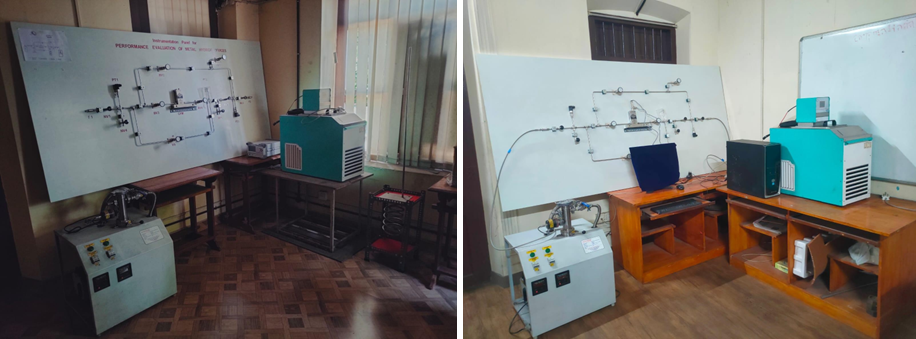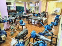 This lab features experimental setups for performance testing of hydraulic machines (turbines, pumps) and flow parameter evaluation, along with plumbing tools for demonstrations. It covers fluid properties, statics, kinematics, dynamics, pipe/nozzle/channel flow, and energy transfer in fluid machinery. Students develop analytical skills for designing, analyzing, and selecting fluid systems in power generation, irrigation, water supply, and industrial applications.