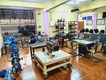 Focused on vehicle servicing and reconditioning, this lab includes wheel alignment equipment, line boring machines, crankshaft grinding machines, brake drum skimming machines, valve refacing/seat cutting/grinding machines, cylinder reboring machines, fuel injection pump calibrator, automatic tyre changer, spark plug testing/cleaning equipment, growler, neon timing light, dwell tester, and other auto electrical tools.